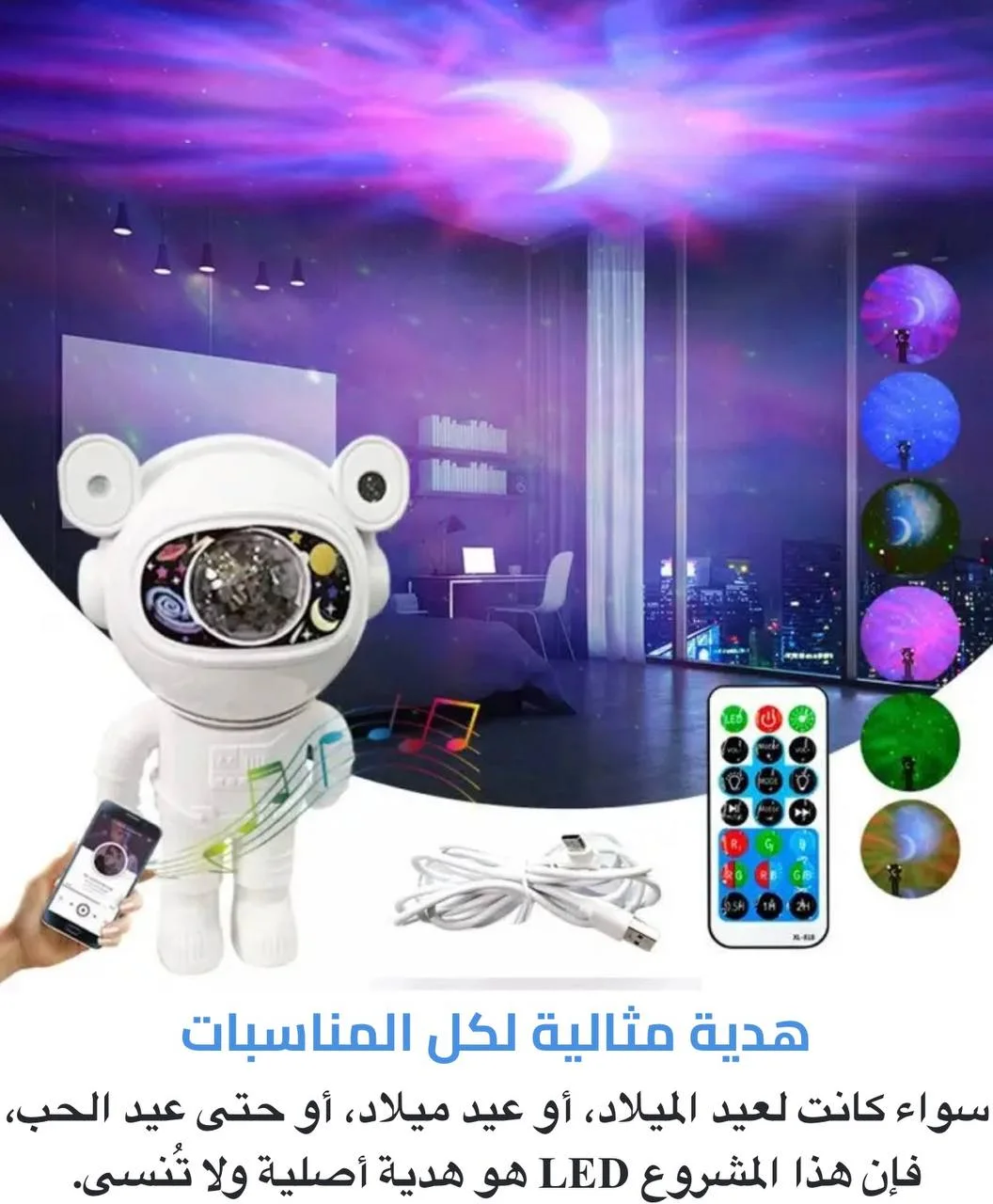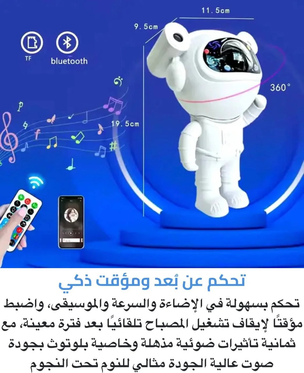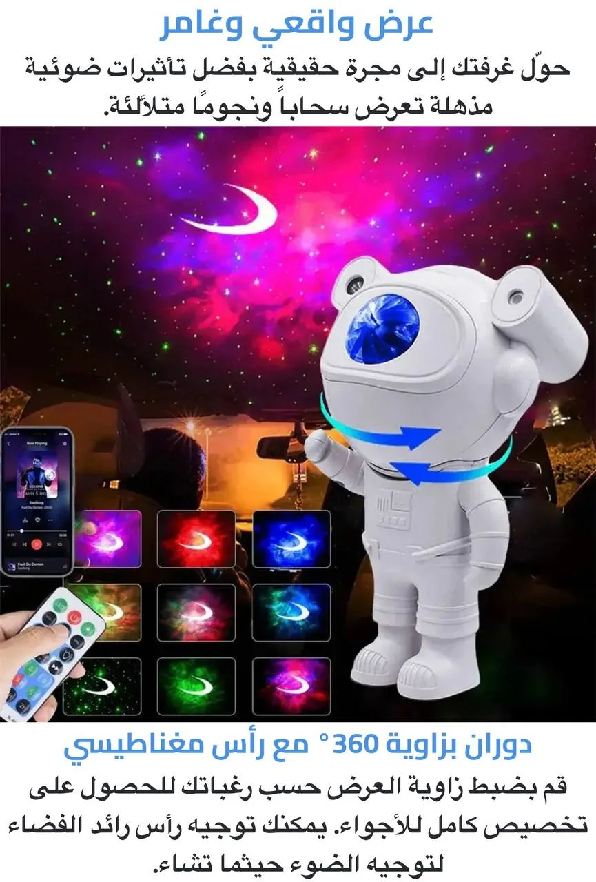 رجل الفضاء المضيء هو جهاز إضاءة على شكل رائد فضاء، عادة ما يكون مصممًا لخلق أجواء مريحة ومسلية، خاصة في غرف الأطفال. يعمل عن طريق إسقاط صور وأشكال مختلفة على الجدران والسقف، مثل النجوم والكواكب والمجرات، مما يخلق تأثيرًا يشبه السماء المرصعة بالنجوم.