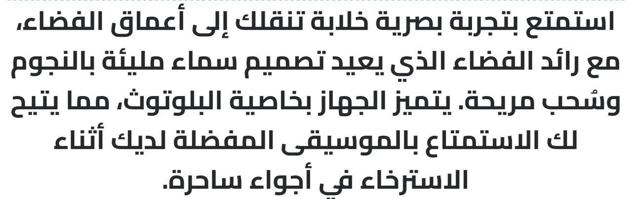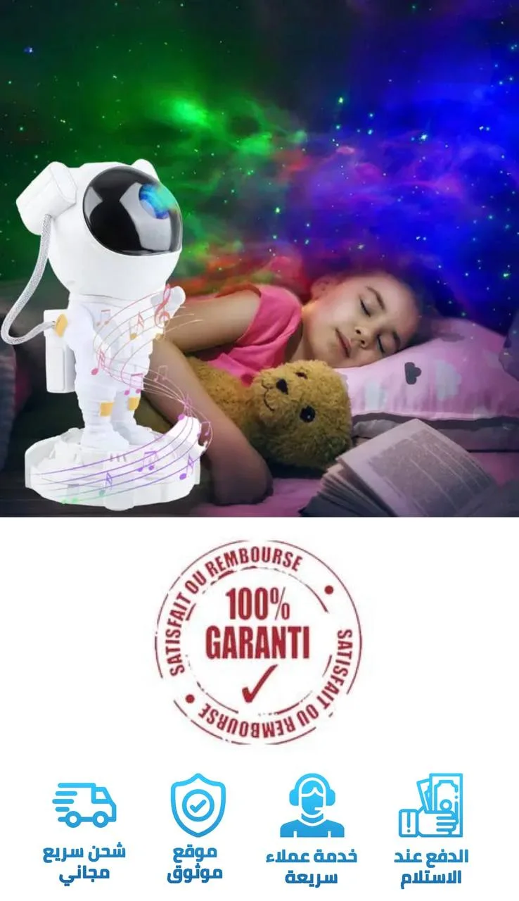 تصميم جذاب: يأتي بتصميم جذاب على شكل رائد فضاء، مما يجعله قطعة ديكور جذابة في أي غرفة. إضاءة متعددة الألوان: عادة ما يوفر مجموعة متنوعة من الألوان والأشكال التي يمكن التحكم فيها عن بعد، مما يسمح لك بتخصيص تجربة الإضاءة. سهولة الاستخدام: يأتي مع جهاز تحكم عن بعد يسهل من خلاله تشغيله وإيقافه وتغيير الإعدادات. استخدامات متعددة: يمكن استخدامه كضوء ليلي للأطفال، أو كإضاءة ديكور لغرفة المعيشة، أو حتى كجهاز مساعد على النوم.